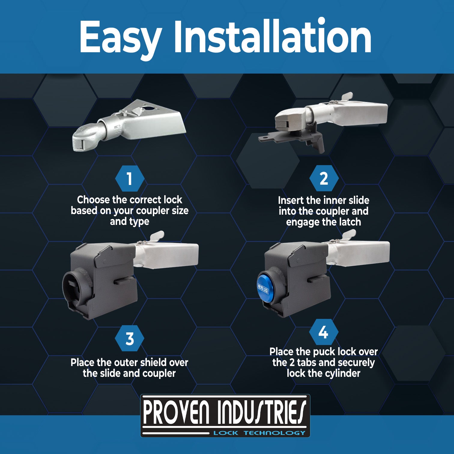 All sales from this site are final. These items are being sold as "B" stock. They have the same form, fit, and function as the new version, but may contain finishing defects, minor scrapes/scuffs, small dents, cosmetic defects, etc. Due to all sales being final, we strongly suggest contacting our sales team by emailing support@provenlocks.com prior to purchasing to ensure you are selecting the correct product. Please include a picture of your trailer coupler and/or wheel size (whichever is applicable to your order).